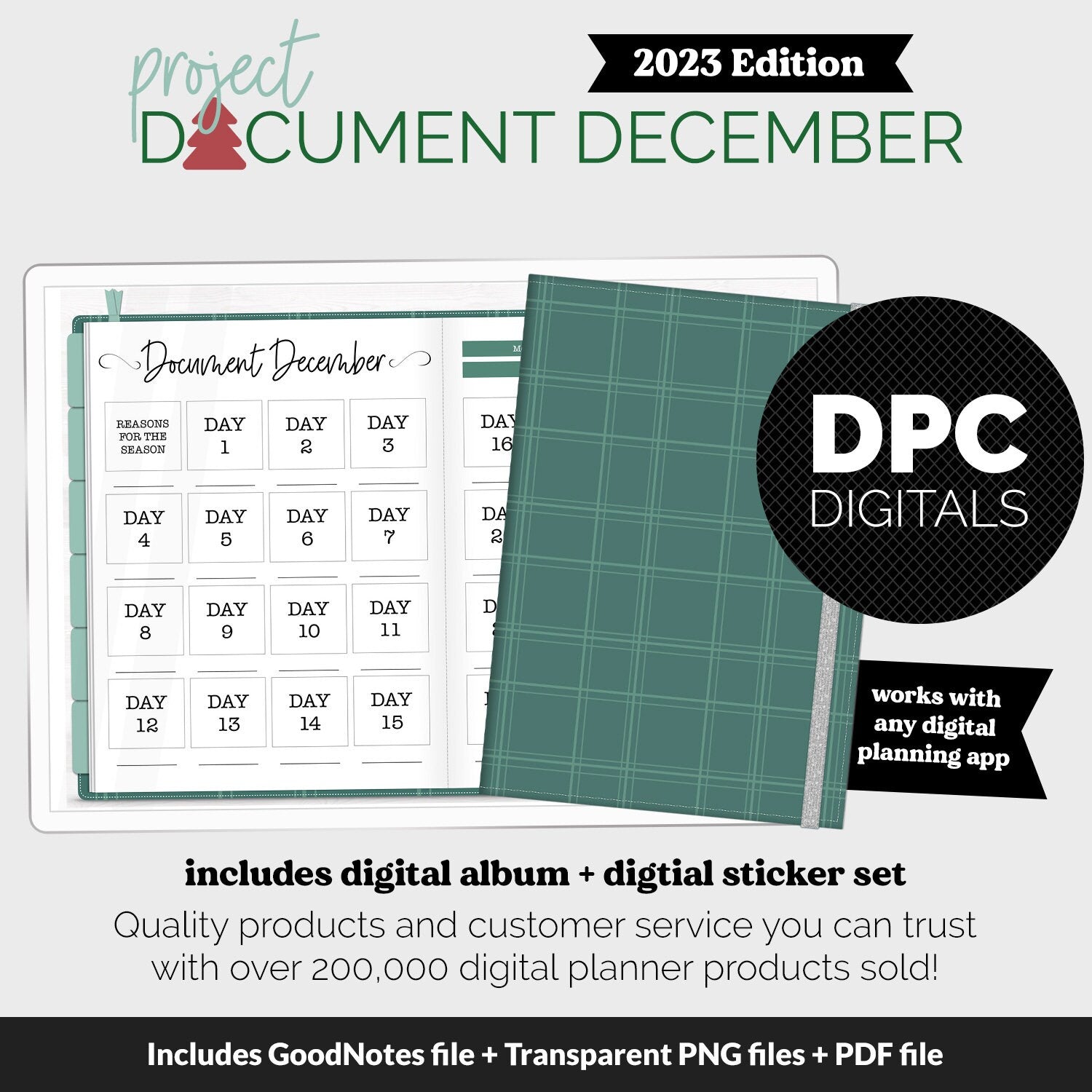 For many, this time of year is packed full of memories and traditions that lend themselves to documenting. With digital planning, this is even easier than ever! Introducing the 2023 DPC Digitals Project Document December bundle! This bundle includes a holiday-themed memory/scrapbooking album perfect for documenting every day during December. In addition, you’ll receive a sticker pack to help decorate your pages and add a little extra flair to your photos. If you’re looking for more stickers to complement this concept, the Merry theme sticker sets will coordinate. GoodNotes users, the stickers with this set are already PRE-CROPPED! Other app users - all the images are saved as INDIVIDUAL files and ready to insert into your pages!