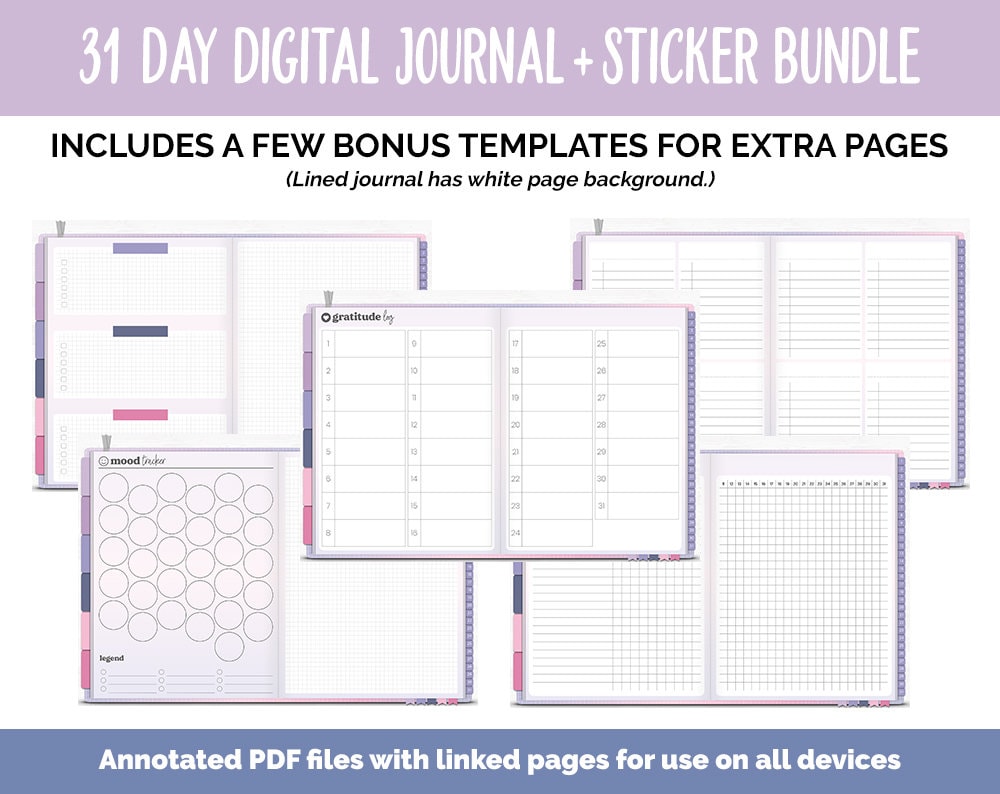 31 Day Digital Journal + Sticker Bundle | Adore Theme