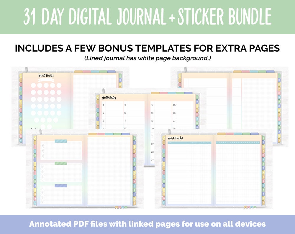 31 Day Digital Journal + Sticker Bundle | Daydream Theme