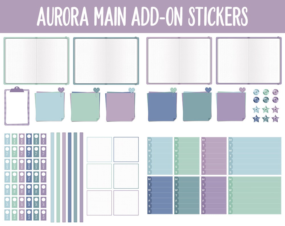 Want some of your favorite functional DPC Digitals stickers in matching colors for Aurora color theme? This add-on set includes a variety of the most popular stickers from the Track It! And Planning Fun sets including new trackers from the Media and Budget Track It! sets. It also includes Sunday start versions of ALL weekly stickers! GoodNotes users, this package comes already PRE-CROPPED! Other app users - all the images are saved as INDIVIDUAL files presorted into folders and ready to insert into your pages!