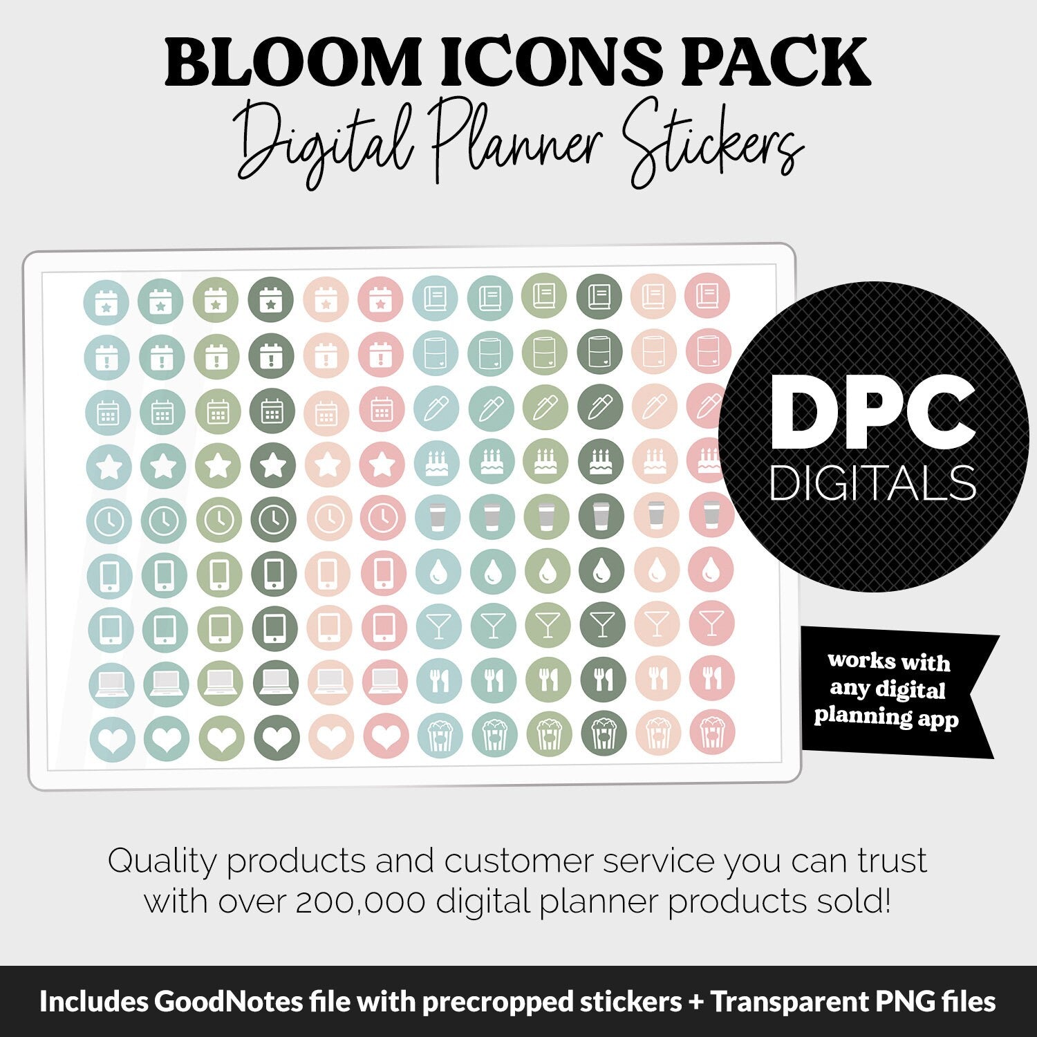Bloom Icons Digital Planner Stickers | GoodNotes, iPad and Android | Icons, Life, Weather, Everyday