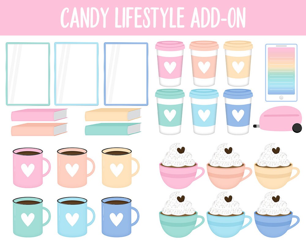 Candy Lifestyle Add-On Digital Stickers | GoodNotes & iPad | TV, Playlist, Travel, Reading, Work, Groceries