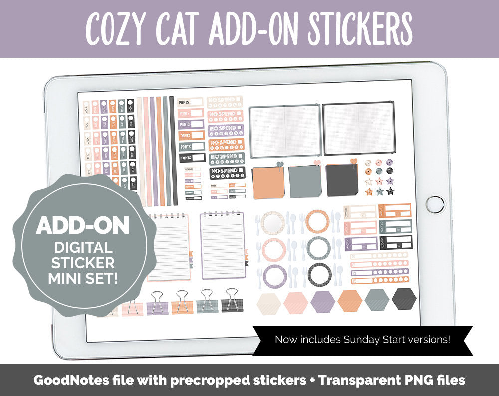 Cozy Cat Add-On Digital Stickers | GoodNotes & iPad | Trackers, Budget, Fitness, Health, Habits