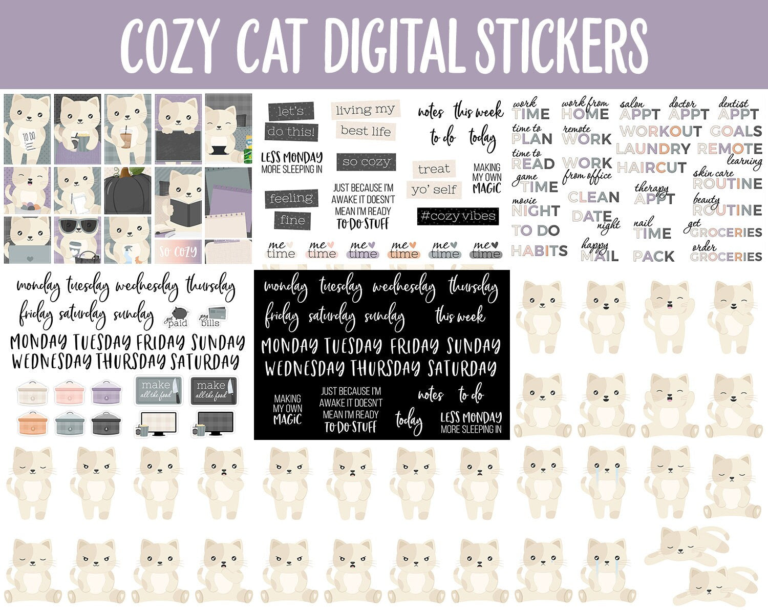 Cozy Cat Digital Sticker Mega Bundle | GoodNotes & iPad | October, Retro, Halloween, Kitty, Work, Kawaii, Adulting, Tasks