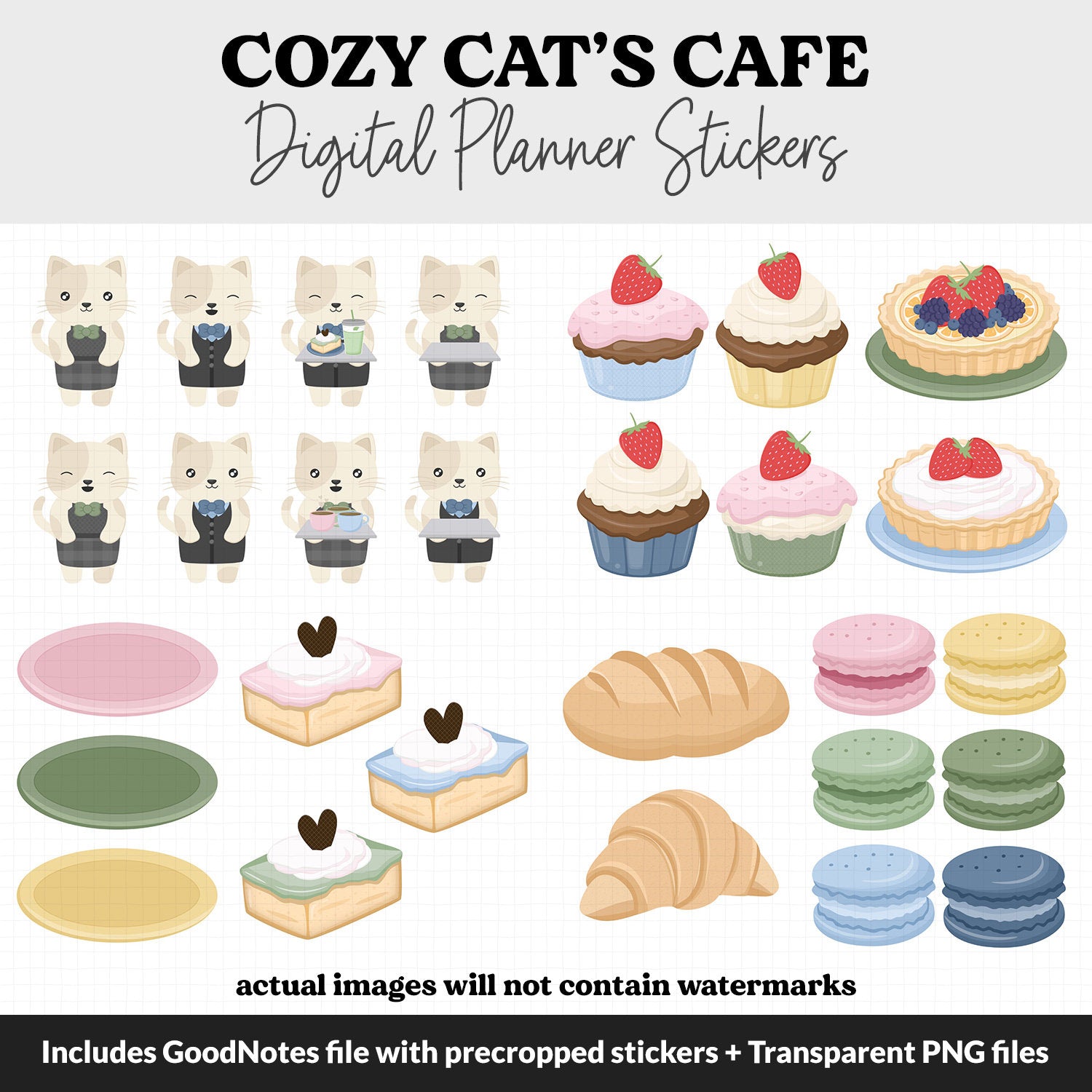 Cozy Cat's Cafe Digital Planner Stickers | GoodNotes, iPad and Android | September, Activities, Coffee, Bakery, Food, Scenes, Tea