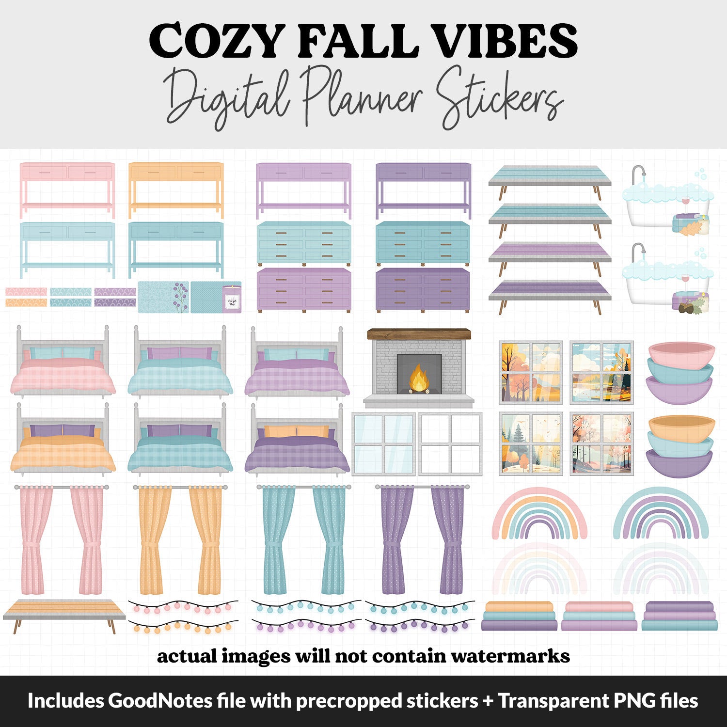 Cozy Fall Vibes Digital Planner Stickers. Matches the Twilight color theme.