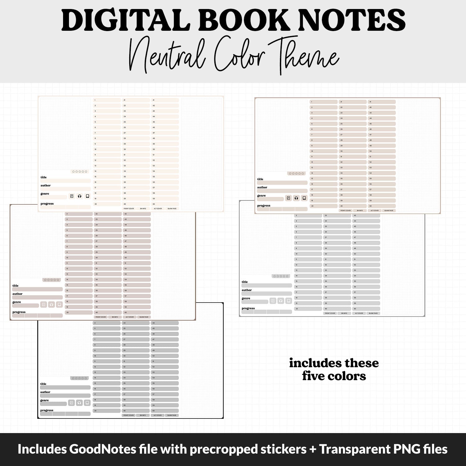 Unlock a world of organized and stylish note-taking with this digital book notes notebook bundle in a neutral color theme. Specifically crafted to encapsulate all your book or subject-specific notes in one place, these notebooks can easily become your go-to for a multitude of purposes including: