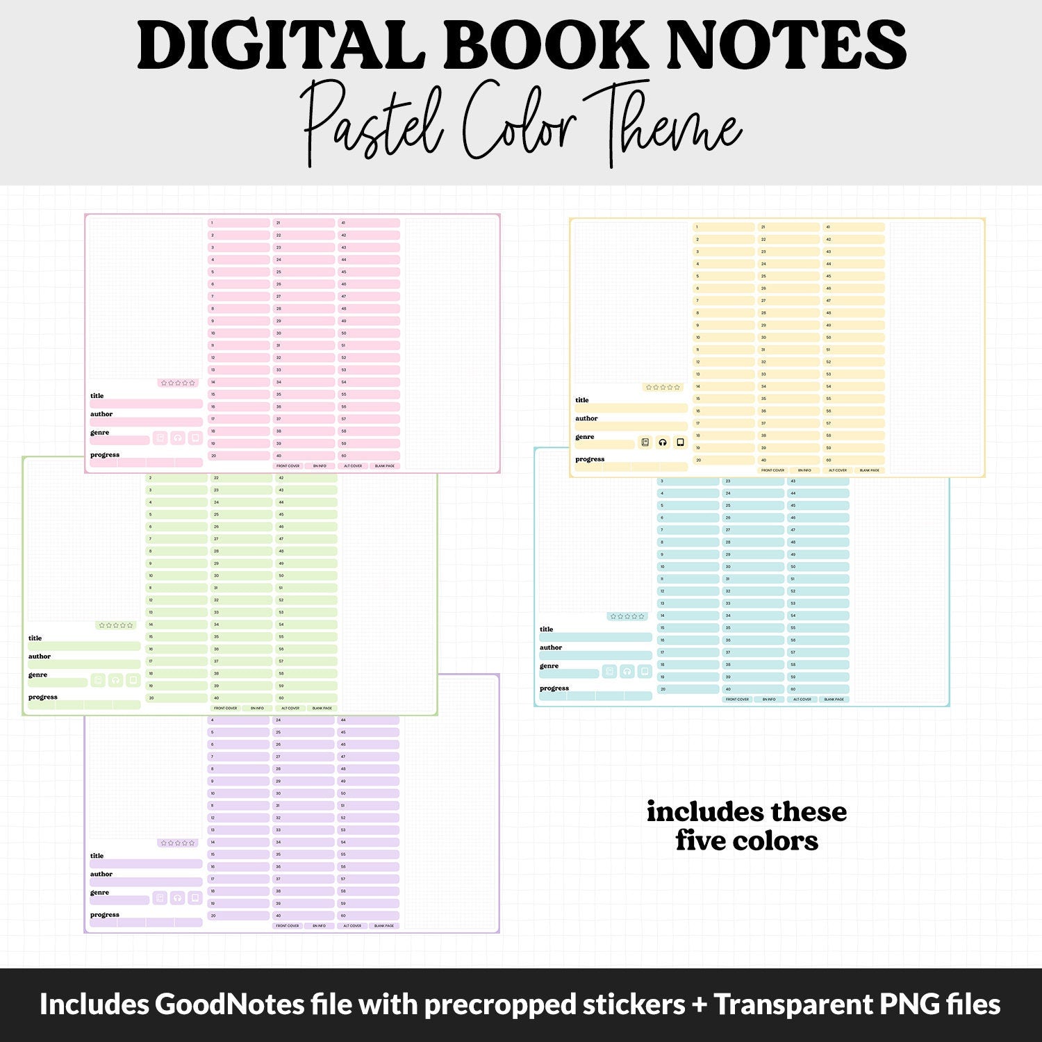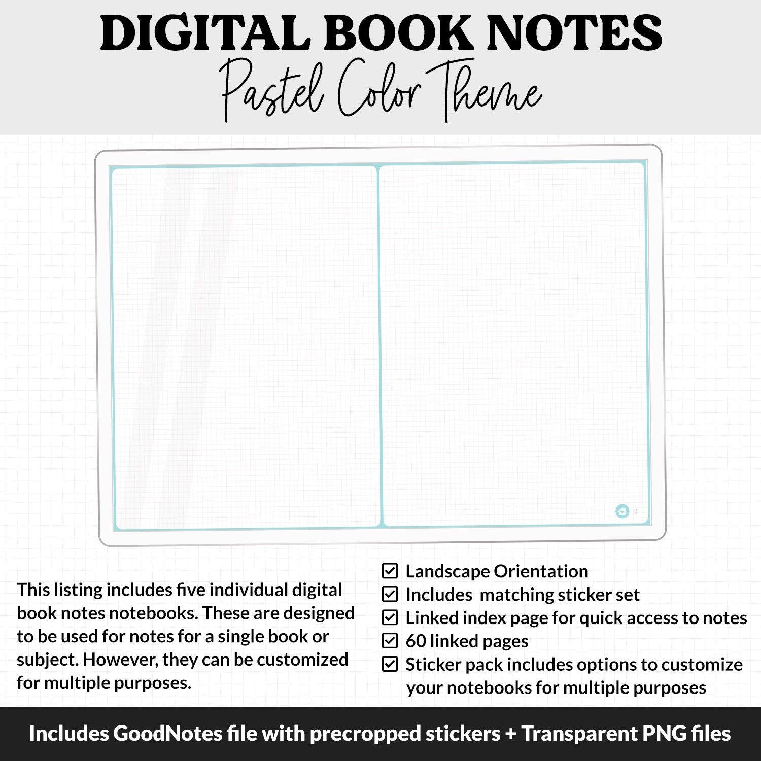 Digital Book Notes Journal Notebook | Pastel | GoodNotes, iPad & Android