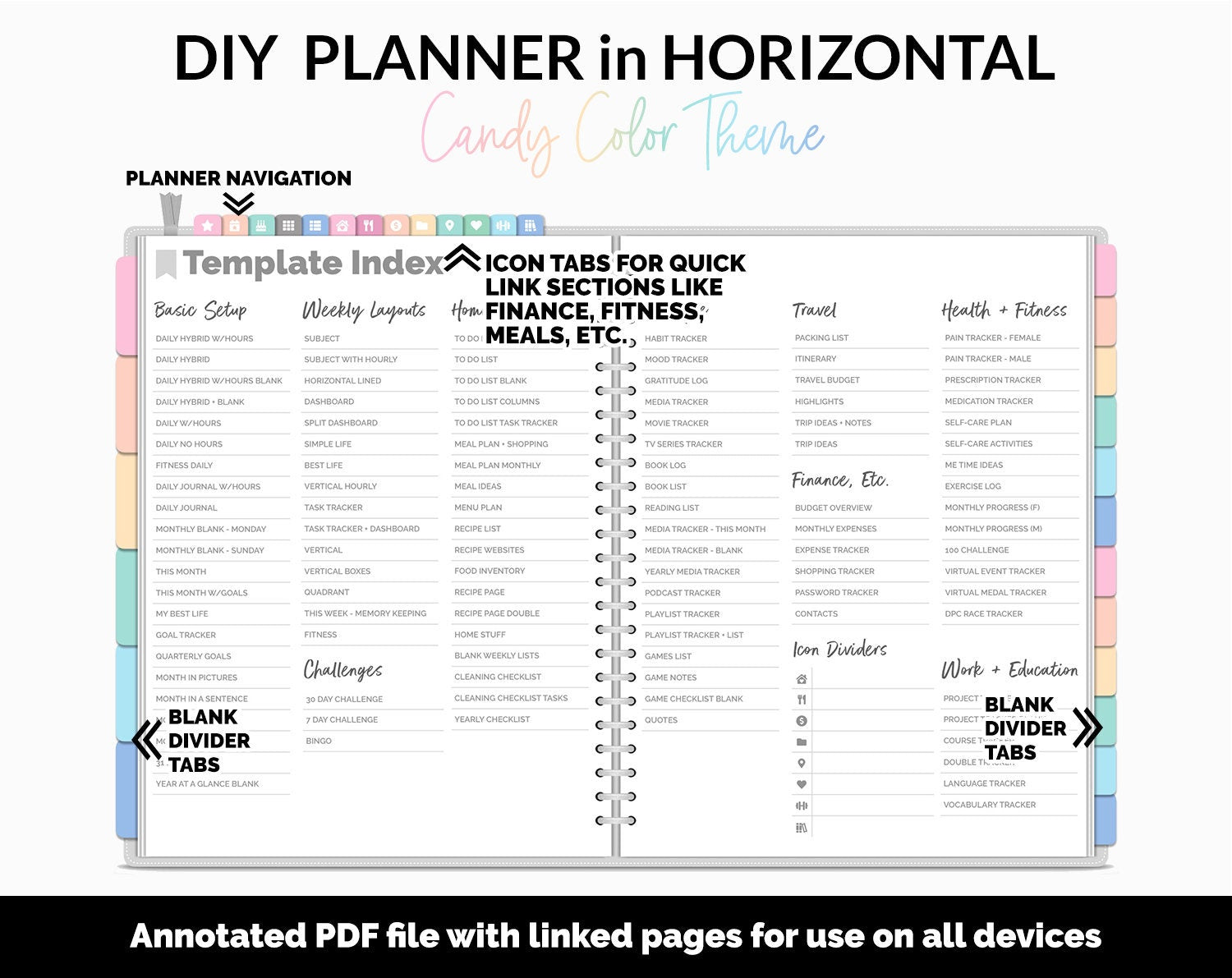DIY Horizontal Digital Planner | Candy Theme | Goodnotes, iPad & Android