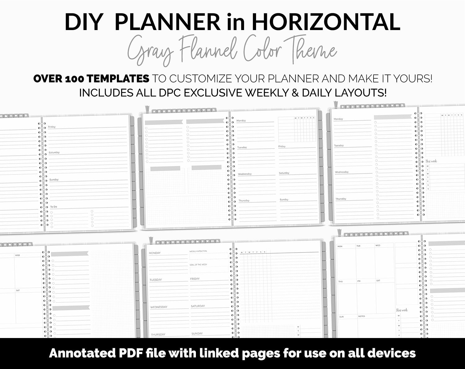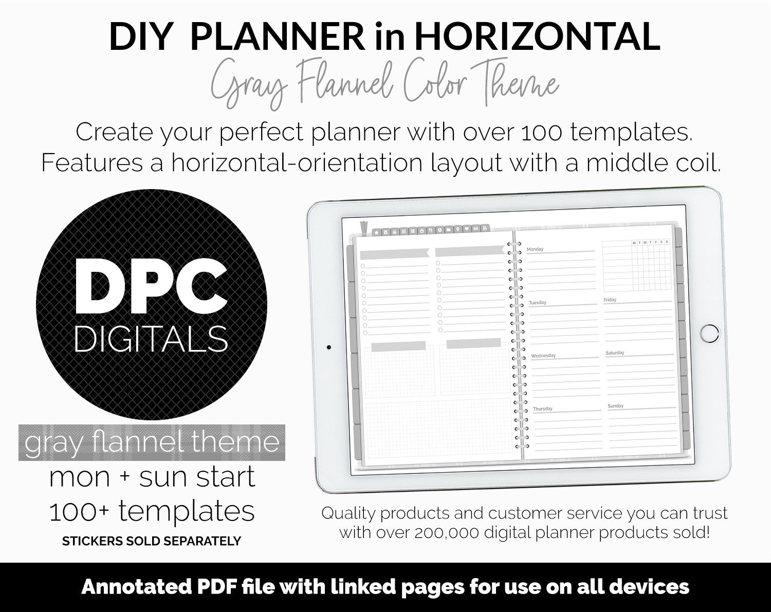 DIY Horizontal Digital Planner | Gray Flannel Theme | Goodnotes, iPad & Android