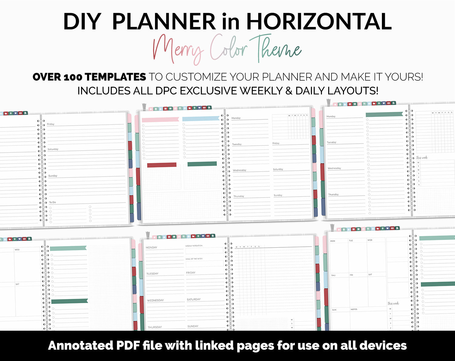 DIY Horizontal Digital Planner | Merry Theme | Goodnotes, iPad & Android
