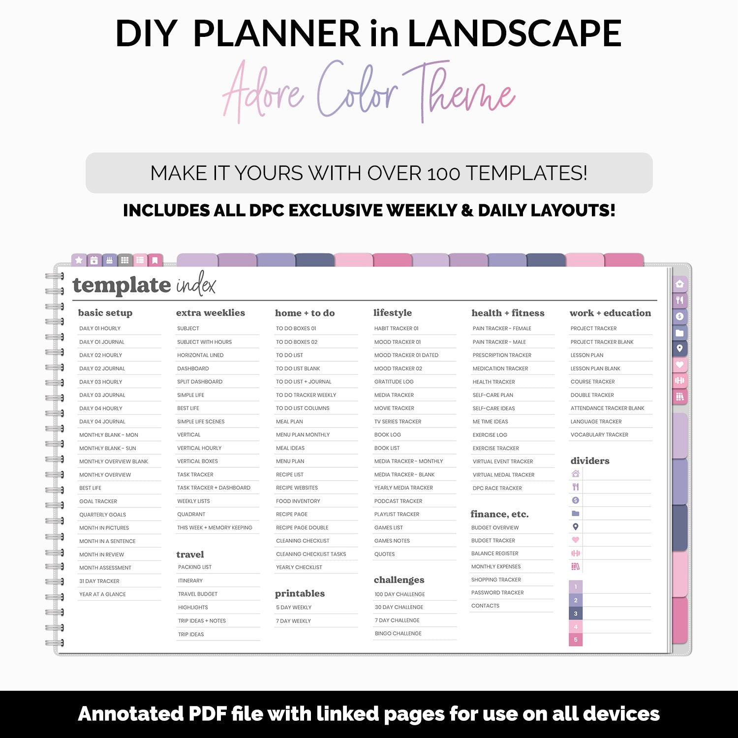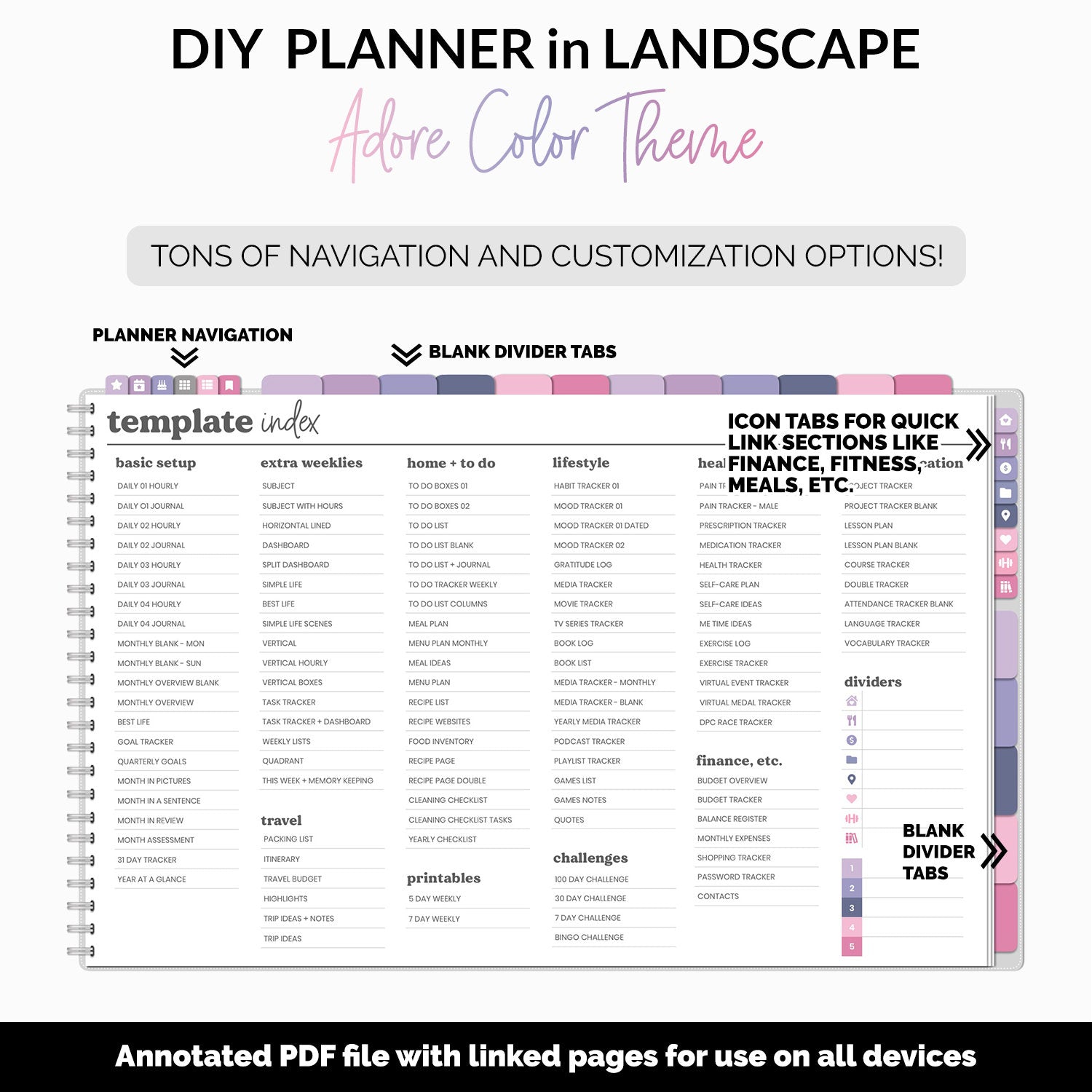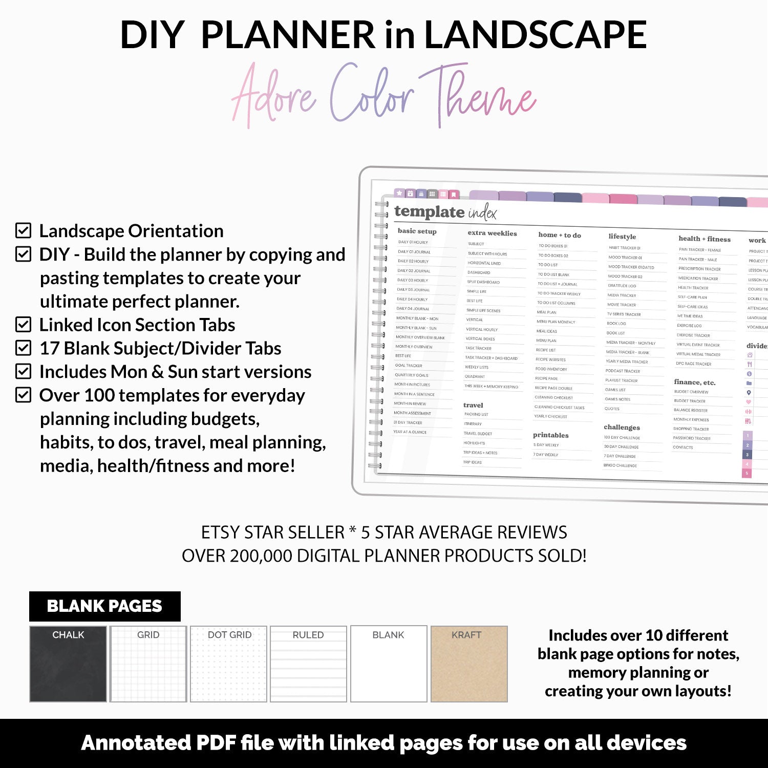 DIY Landscape Digital Planner | Adore Theme | Goodnotes, iPad & Android | Notebook