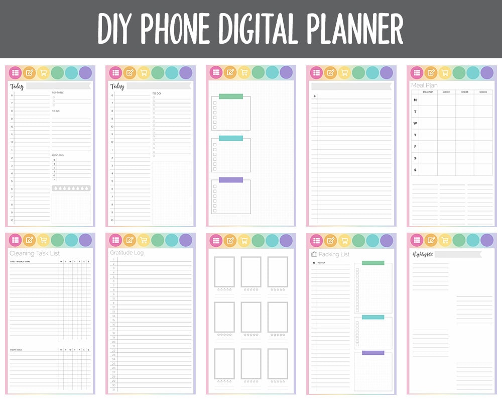DIY Phone Digital Planner | Rainbow Theme | Goodnotes, iPad & Android