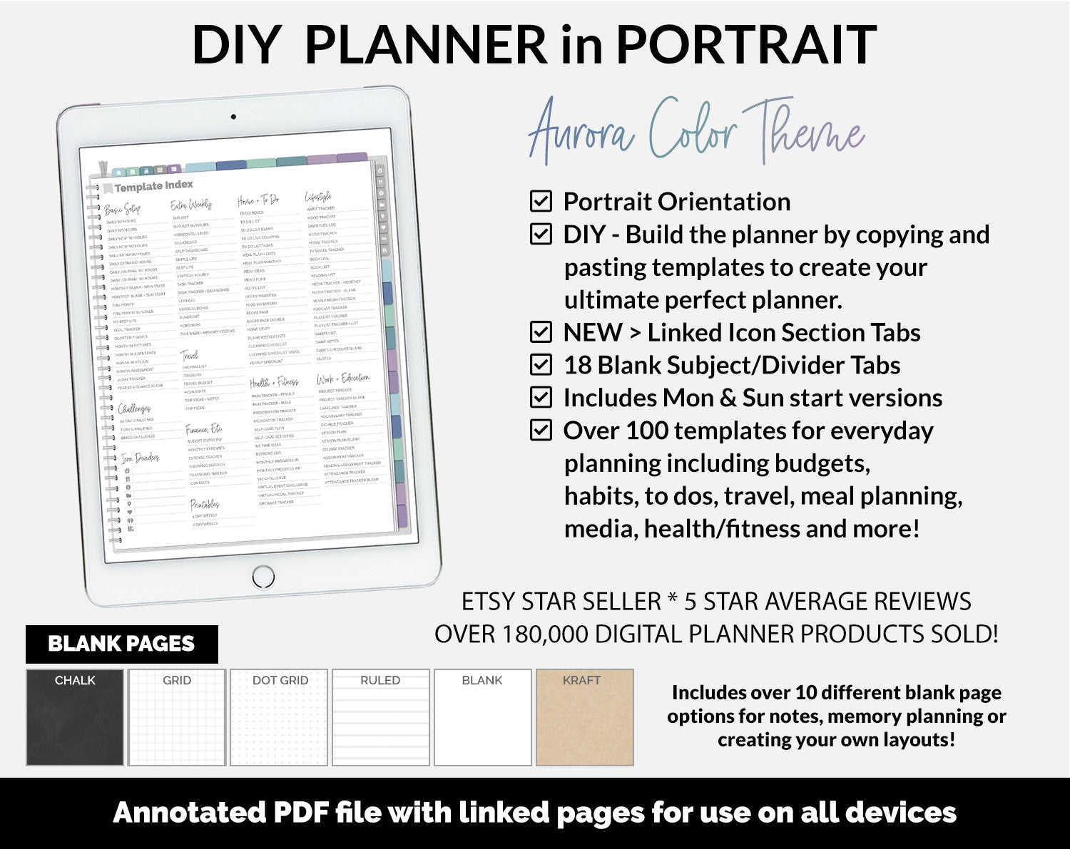 DIY Portrait Digital Planner | Aurora Theme | Goodnotes, iPad & Android