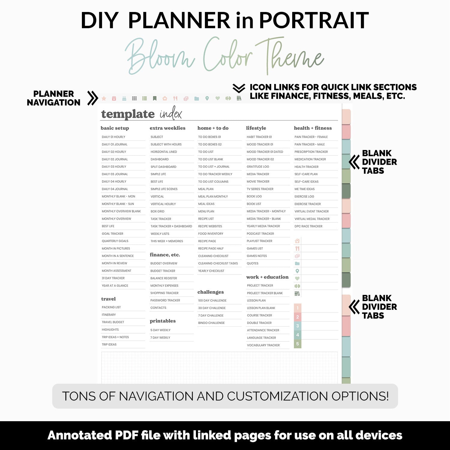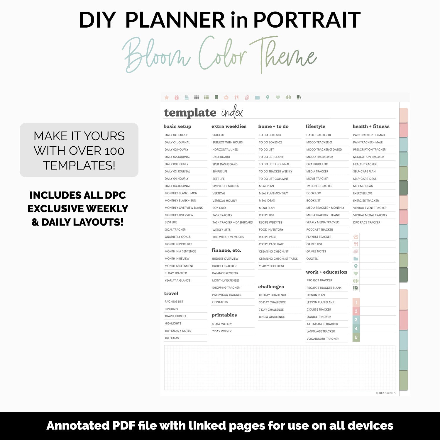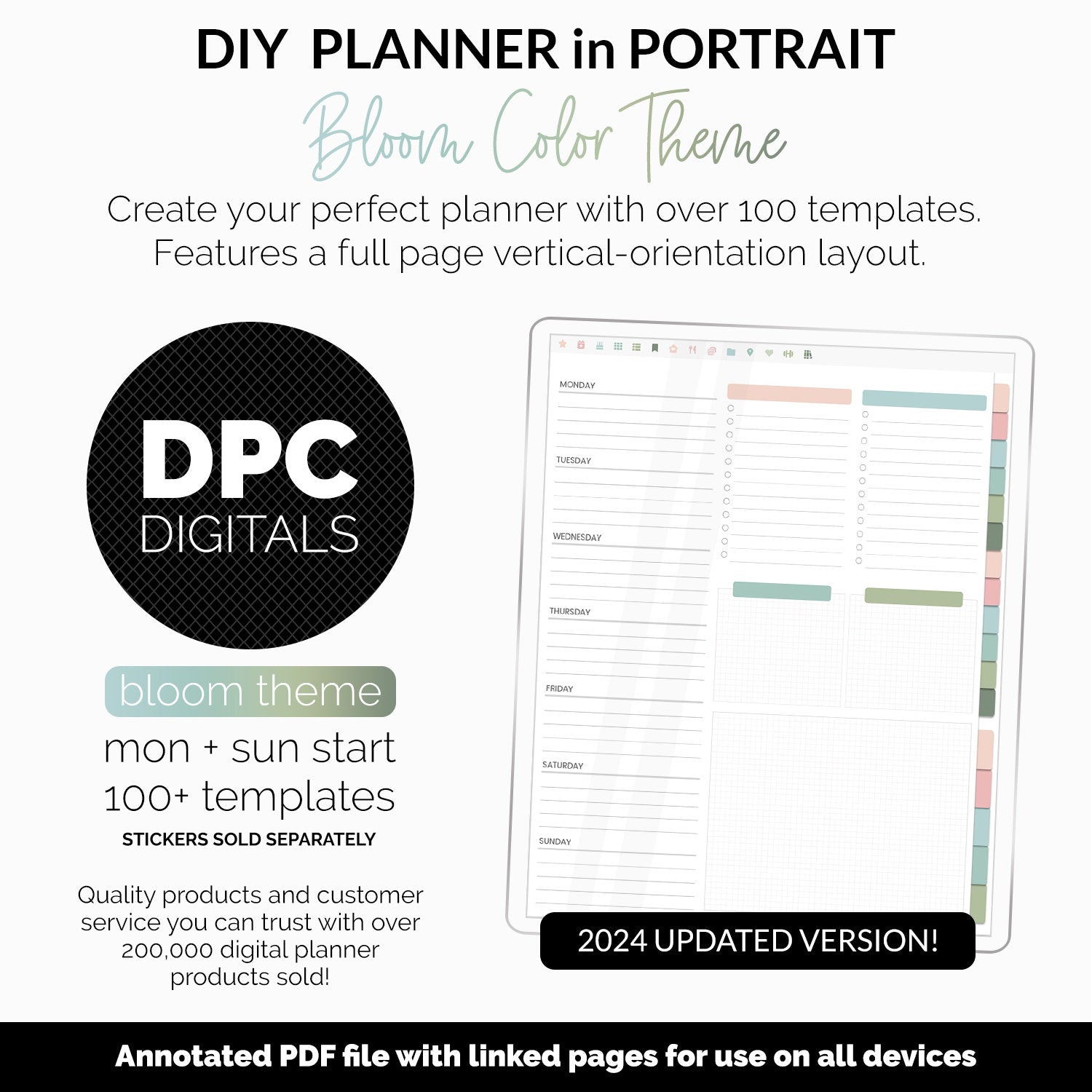 DIY Portrait Digital Planner | Bloom Theme | Goodnotes, iPad & Android