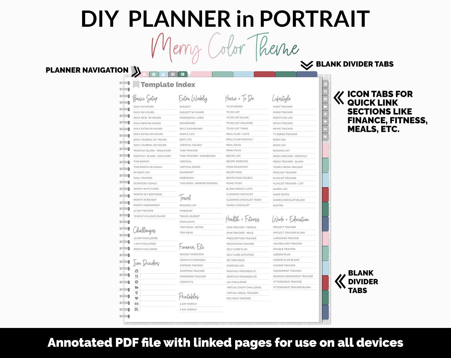 DIY Portrait Digital Planner | Merry Theme | Goodnotes, iPad & Android