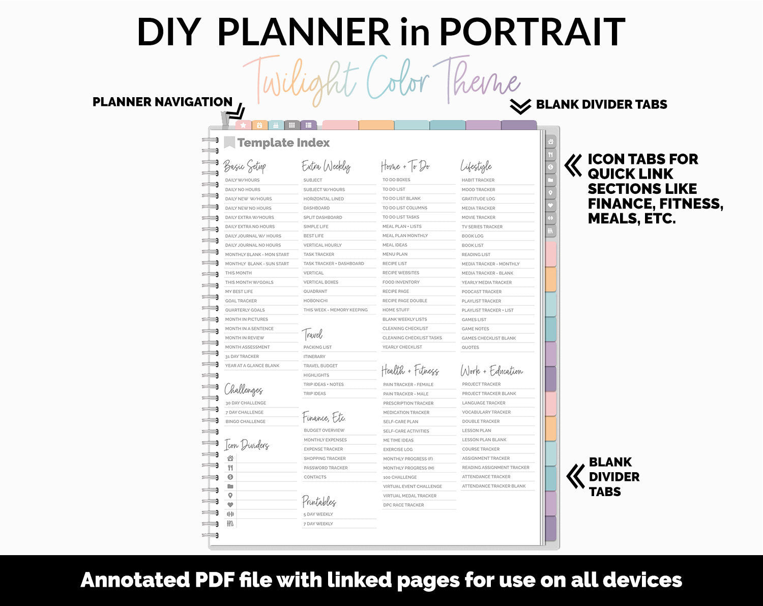 DIY Portrait Digital Planner | Twilight Theme | Goodnotes, iPad & Android