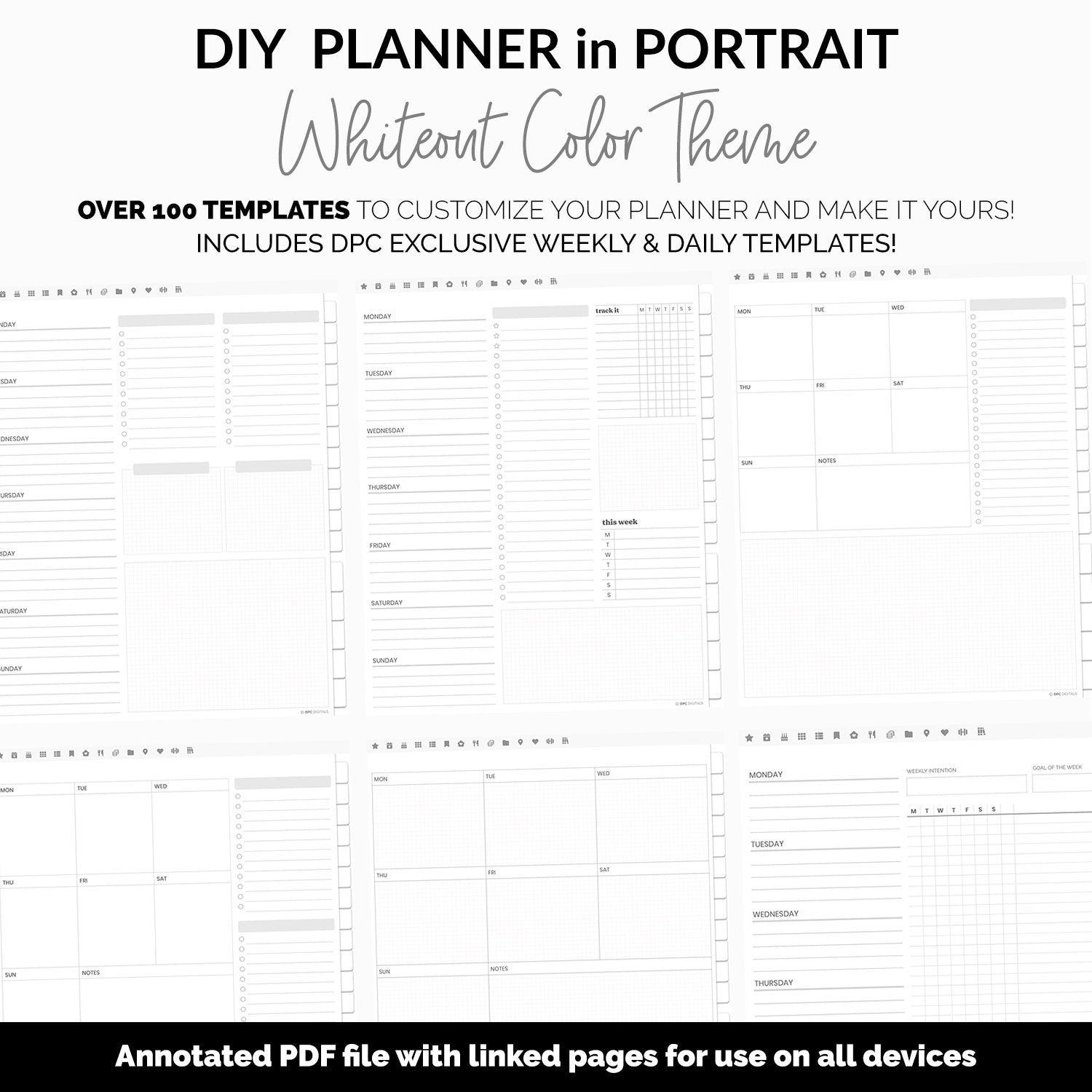 DIY Portrait Digital Planner | Whiteout Theme | Goodnotes, iPad & Android