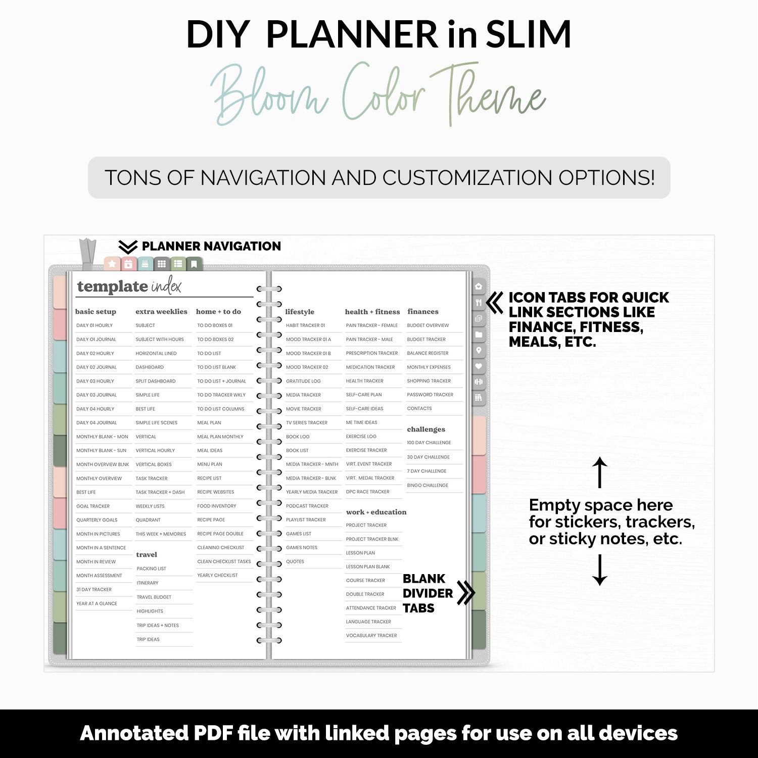DIY Slim Digital Planner | Bloom Theme | Goodnotes, iPad & Android | Notebook