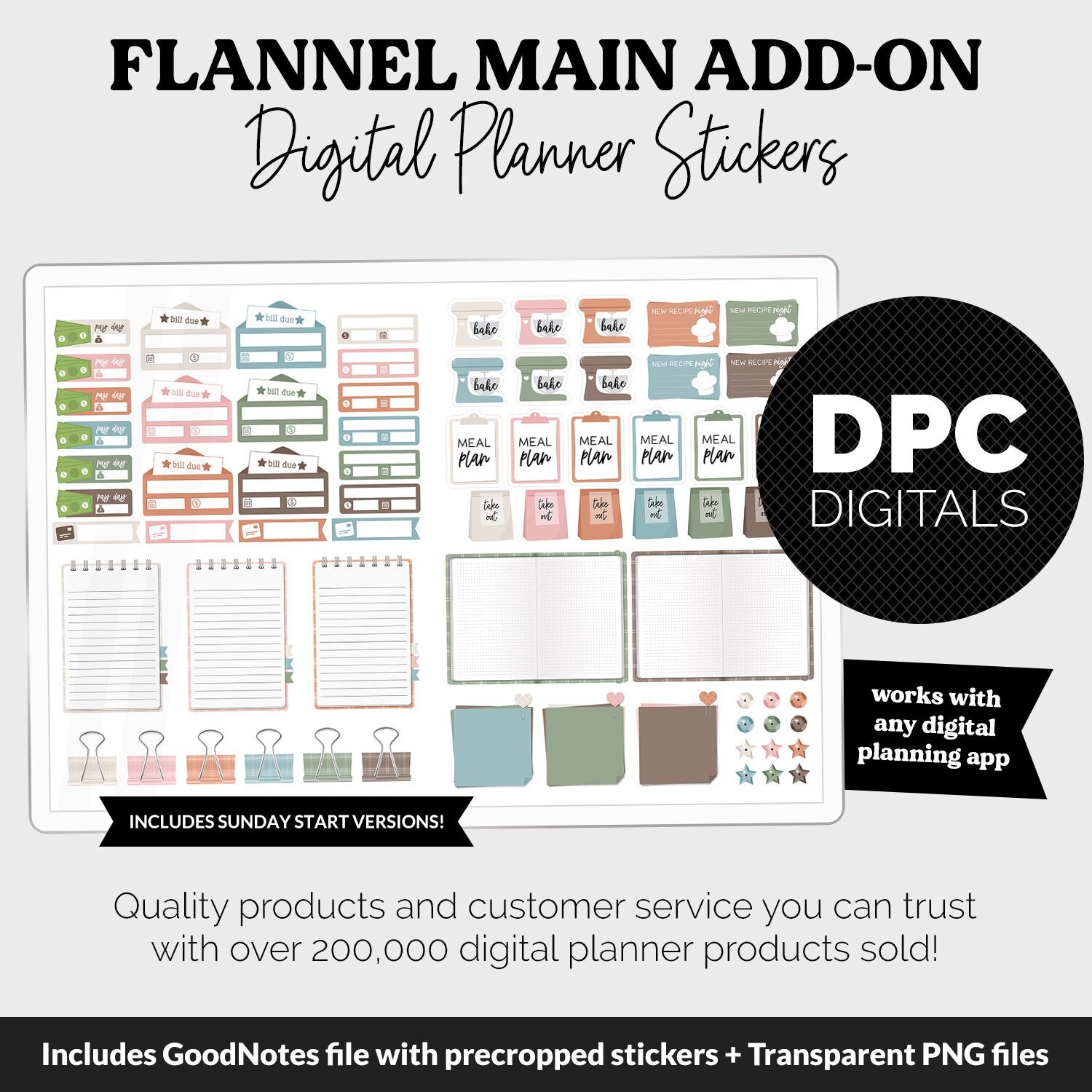 Flannel Add-On Digital Stickers | GoodNotes & iPad | Trackers, Budget, Meal Planning, Health, Habits