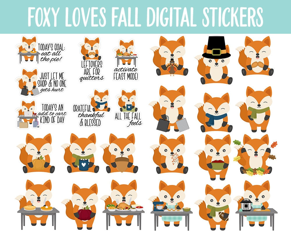 Foxy Loves Fall Digital Stickers | GoodNotes & iPad | Thanksgiving, Fox, Kawaii, Adulting, Moods, Tasks, November
