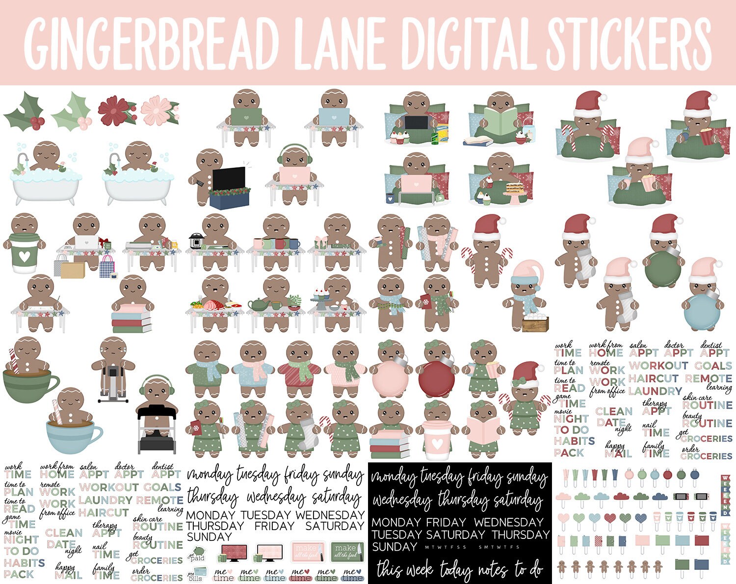Gingerbread Lane Digital Sticker Mega Bundle | GoodNotes & iPad | December, Winter, Christmas, Chores, Work, Kawaii, Adulting, Tasks