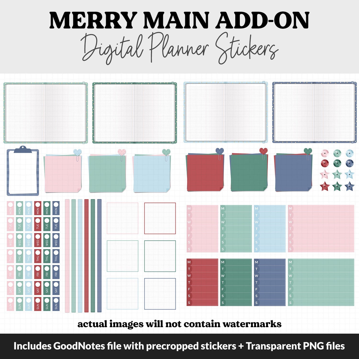 Merry Add-On Digital Stickers | GoodNotes & iPad | Trackers, Budget, Meal Planning, Health, Habits