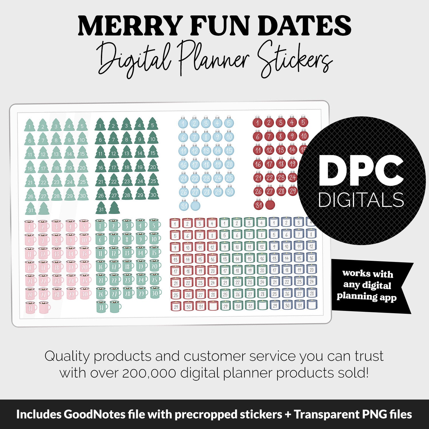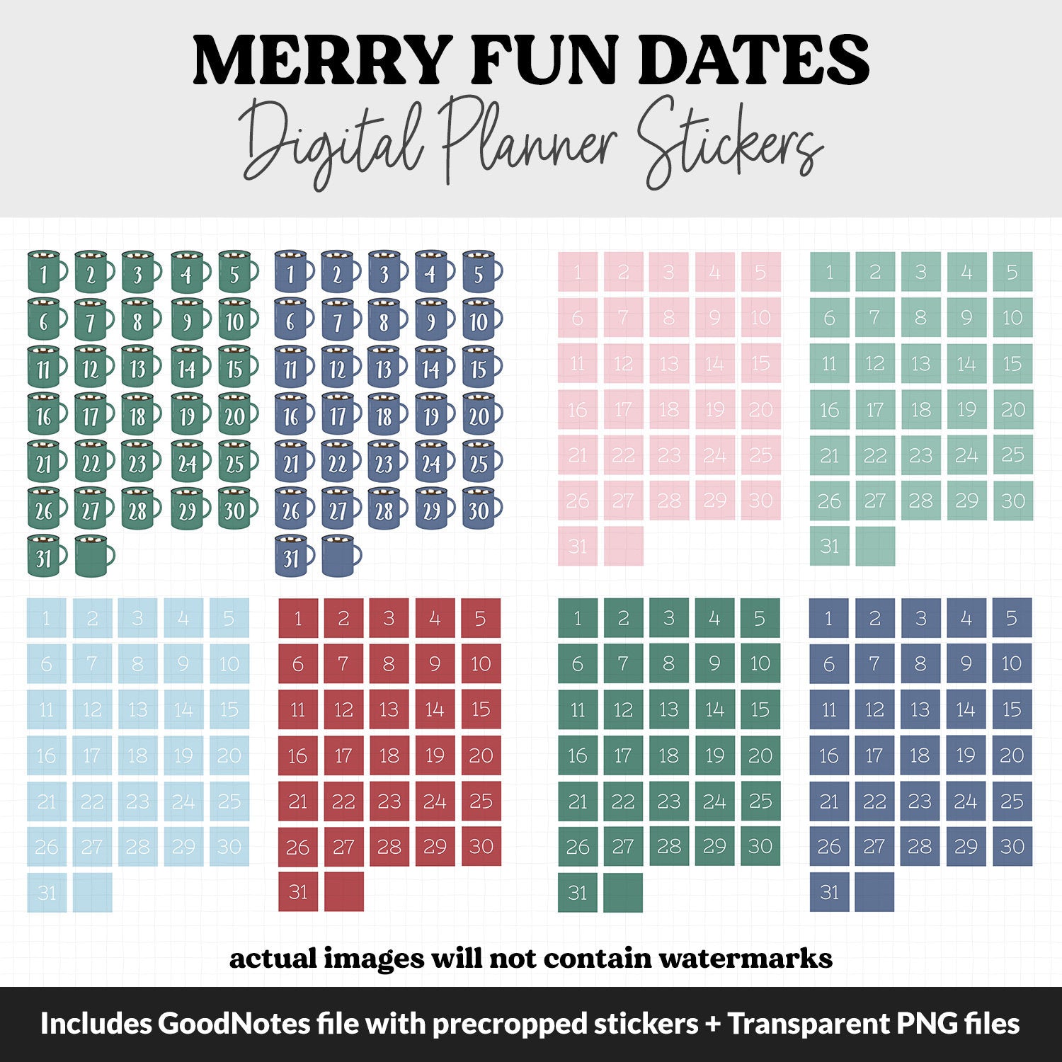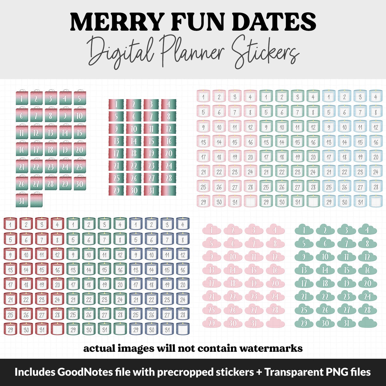 Merry Fun Calendar Date Digital Stickers | GoodNotes, iPad and Android