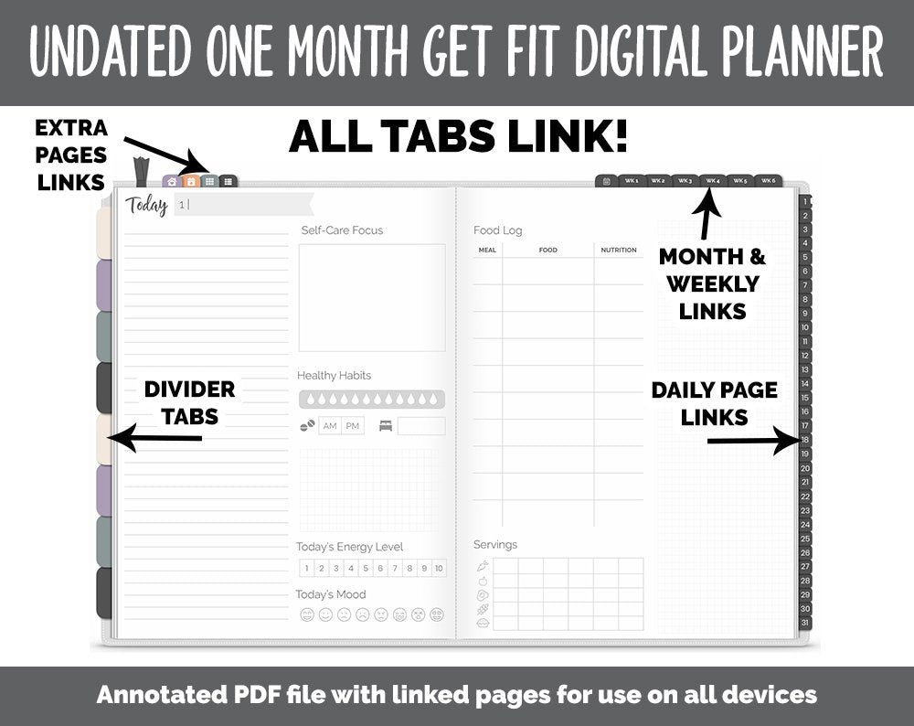 NEW! Undated Get Fit One Month Digital Planner | Moonbeam Theme - Best Health Edition | GoodNotes, iPad & Android | Fitness, Self-Care