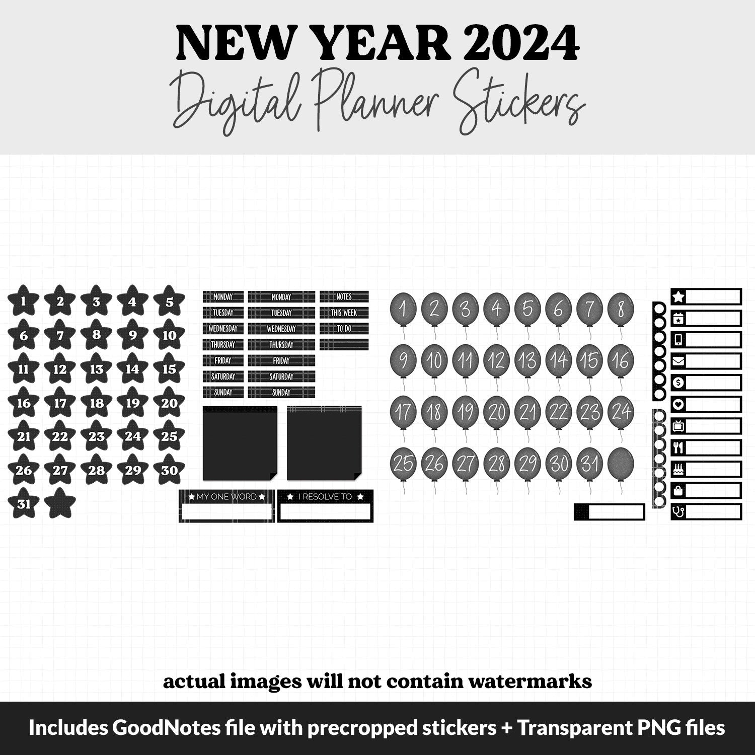 New Year 2024 Digital Planner Stickers | GoodNotes, iPad and Android