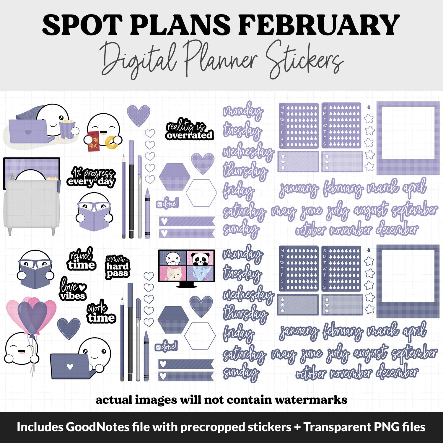 Spot Plans February Digital Stickers | GoodNotes, iPad and Android | Adore | Sassy, Winter, Valentine, Adulting, Planning, Funny