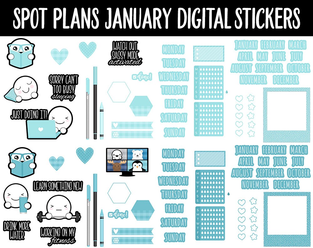 Spot Plans January Digital Stickers | GoodNotes, iPad and Android | Winter, Adulting, Planning