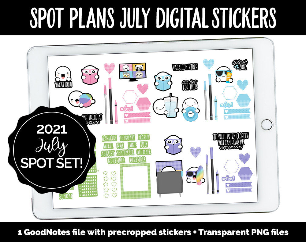 Spot Plans July Digital Stickers | GoodNotes, iPad and Android | Beach, Summer, Pool, Sassy, Adulting, Planning