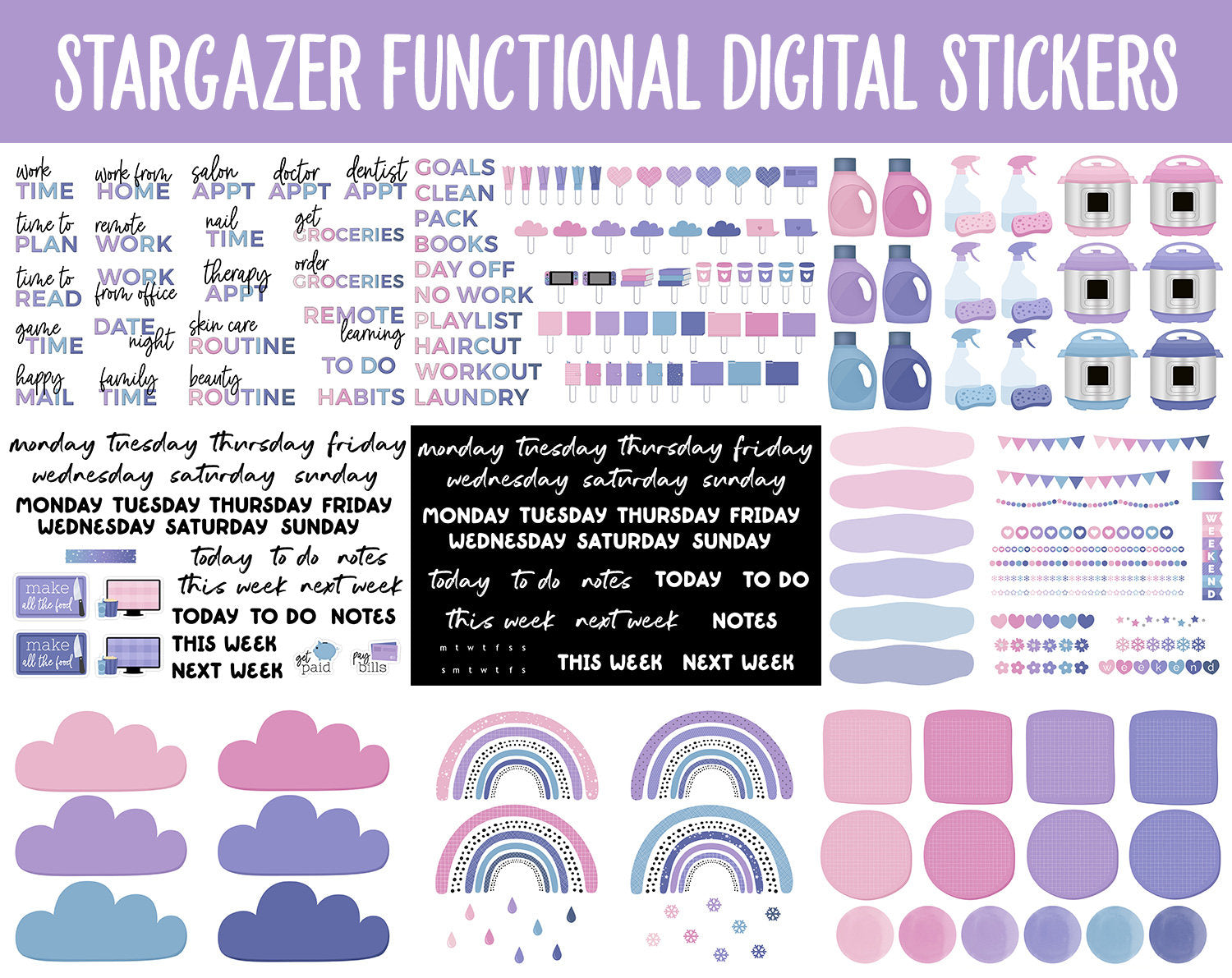 Stargazer Functional Digital Sticker Set | GoodNotes, iPad & Android | Papers, Sticky Notes, Chores, Work, Adulting, Tasks, Dates
