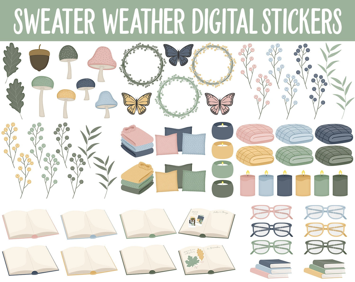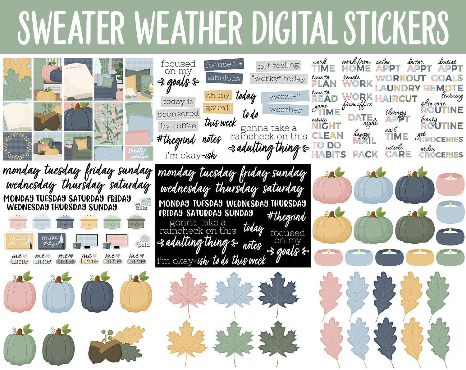 Sweater Weather Digital Sticker Mega Bundle | GoodNotes & iPad | September, Fall, Autumn, Papers, Work, Planner Girls, Adulting, Tasks