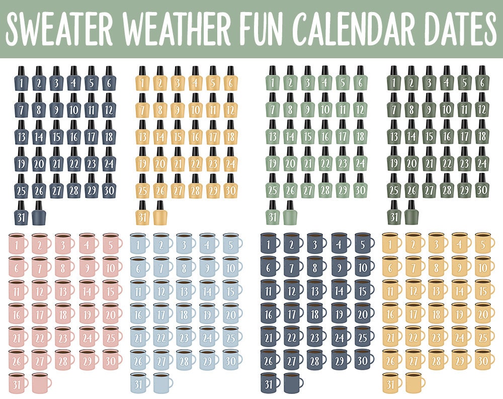 Sweater Weather Fun Calendar Date Digital Stickers | GoodNotes, iPad and Android