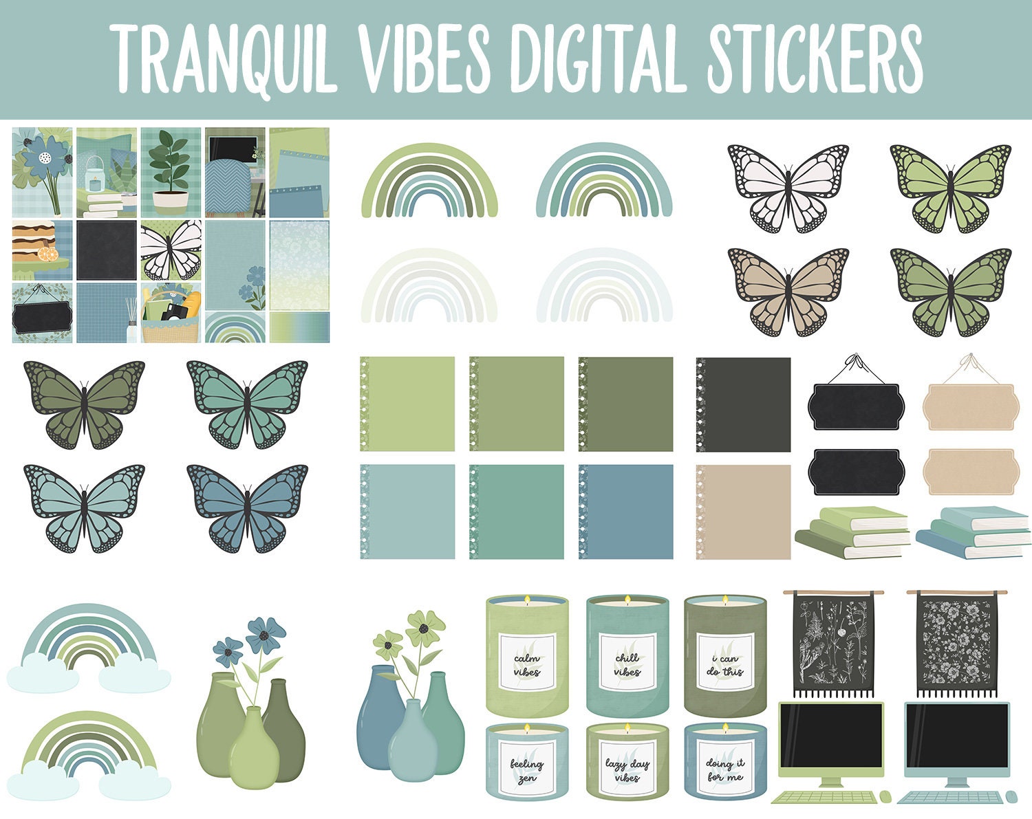 Tranquil Vibes Digital Planner Stickers | GoodNotes, iPad and Android | Tranquil Theme | Home, Spring, Zen, Planner Girls, Floral, Furniture