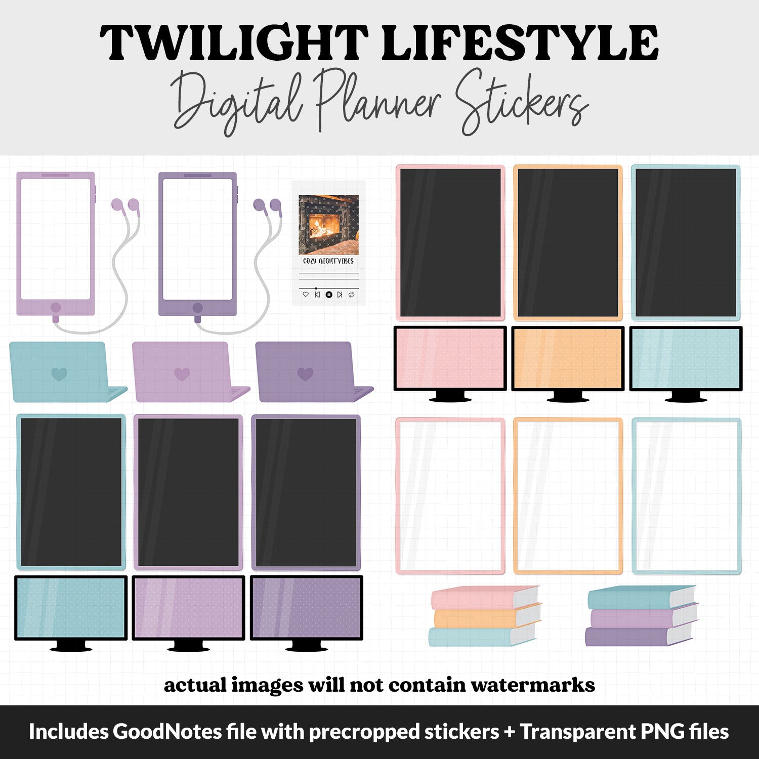 Twilight Lifestyle Add-On Digital Stickers | GoodNotes & iPad | TV, Playlist, Travel, Reading, Work, Groceries